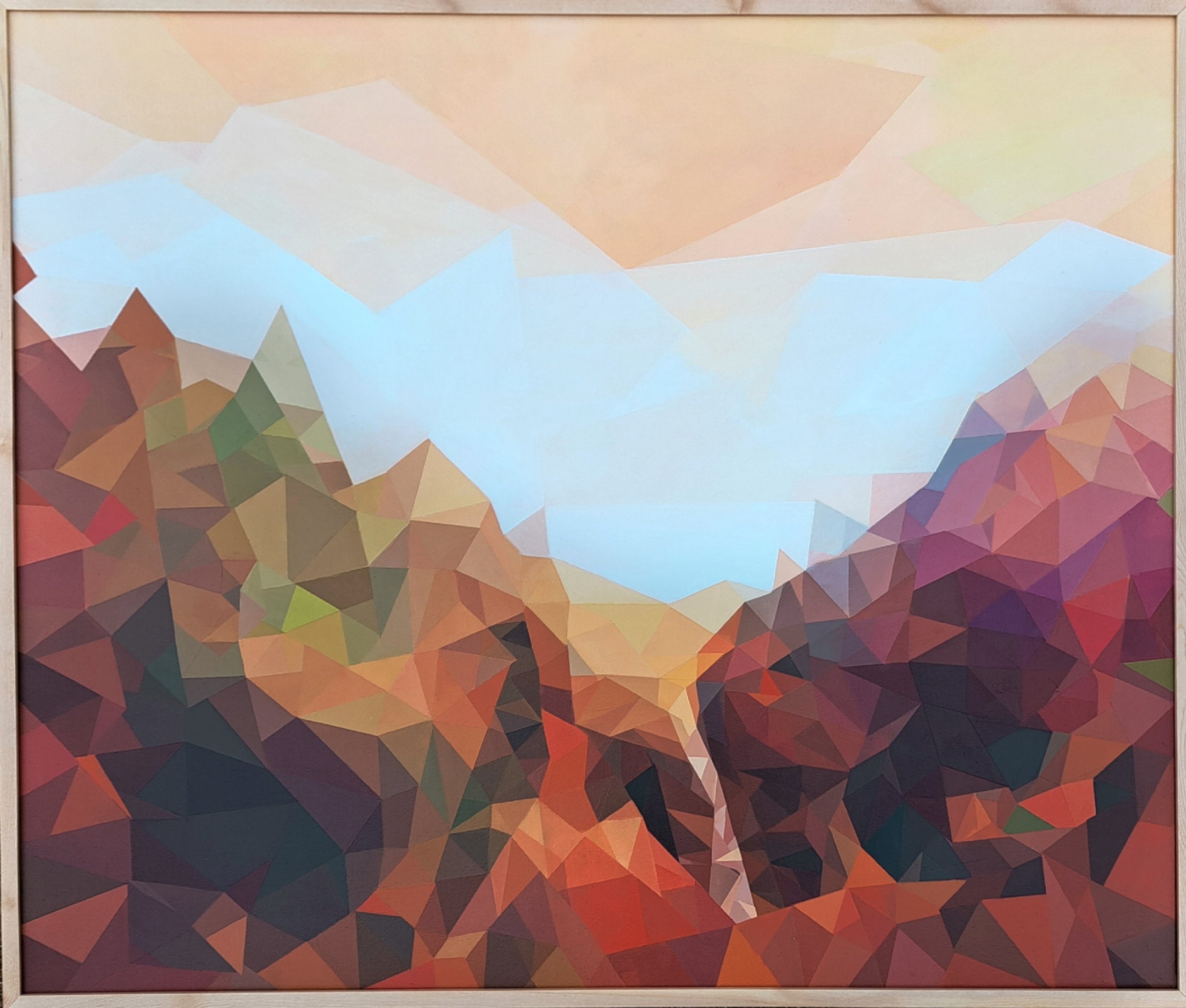 POLYCHROME is a group of Acrylic Paintings inspired by digitally edited landscape photographs. The concept of POLYCHROME was born from my desire to isolate individual colours using computer software. Through this exploration came the ability to compose expressive, colour-rich landscapes with a distinct angular effect.