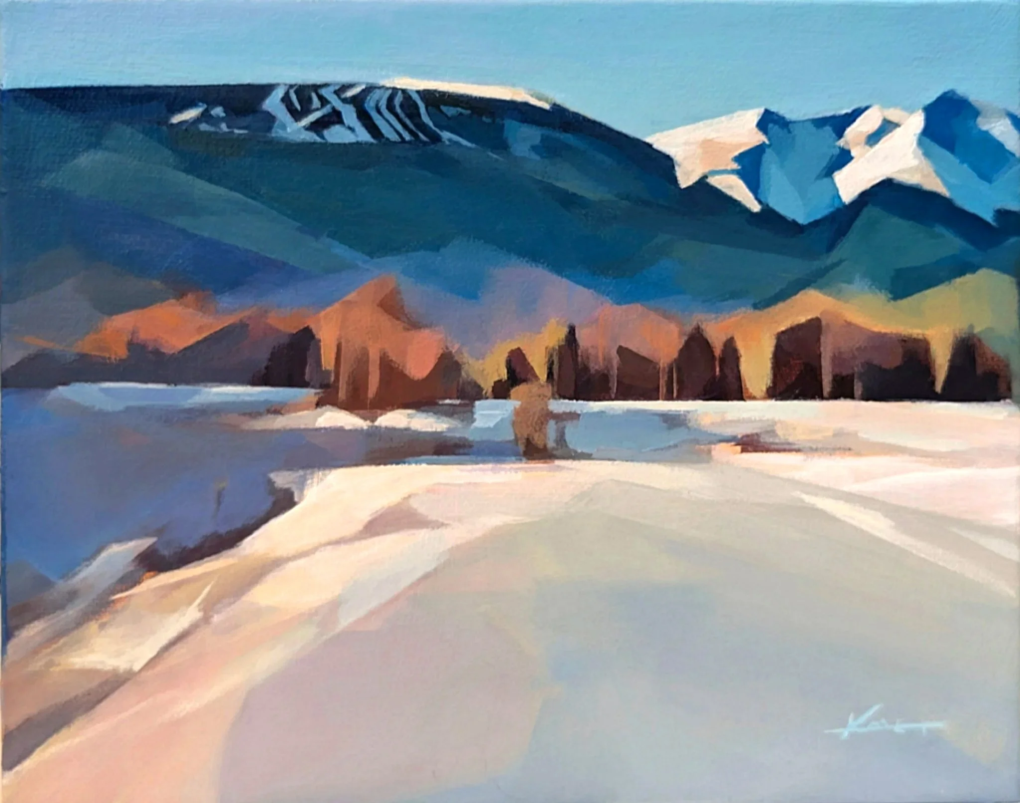 Inspired by the beauty of my home town during the Spring Melt. Lovely dance of cool and warm, dirt and bright melting snow.